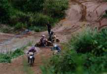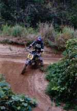 今回一番の(?)難所。長い上り坂手前の深いマッディセクション。泥水たまりが有り、深さは20センチメートルくらい。