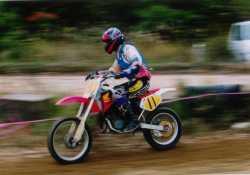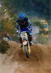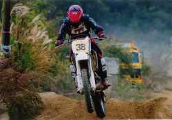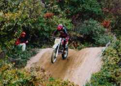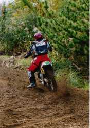 鳥二郎氏はと言えば、今回はいつもの愛車”K90”ではなく、私とペアを組んでの出場となった。その為マシーンはCR80-�なのだ。数年前に何回か乗ったことはあるとはいっても慣れた人でないと乗りこなすのが難しいといわれるミニモトクロッサーにやはり苦しめられることになった。