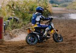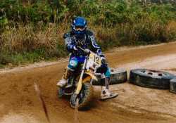 R1氏のハプニングはレース中盤で起った。コース奥のダートラコースの登り付近でコースど真ん中になんとコースマーシャルがバイクを置いていて、それにR1氏は突っ込んだのだ。幸い大怪我には至らずクラッチレバーホルダーが折れた程度で済んだが、一つ間違えば大変なことになっていただろう。 同じレースをしているライダーが転倒しているところに突っ込んだのならしょうがないのだが、マーシャルがコースのど真ん中に停めていたバイクに突っ込んだのだからたまらない!