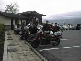 2日目ミルクロード途中の休憩所にて。 今回のツーリングではここの肥後牛焼肉も目当ての一つだったのだ。一口では食べ切れない大きさの肥後牛が串に4つさされていてボリューム満点。もちろん味も満点。思わず2本たいらげてしまった。1本400円(だったかな?)