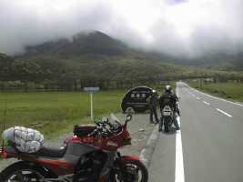 このツーリングの為にバッチシ整備したつもりのM氏だったが、不覚にもプラグは古いままの物だった。前日がトロトロしたペースだったせいもあって、九州に上陸するやいなや1気筒死んでしまった。