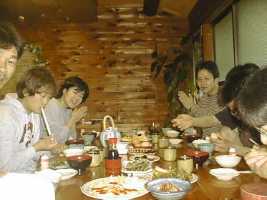 民宿”阿蘇のふもと”にて風呂上がりの夕食。やっぱり民宿はあったかみがあって良い。民宿のおばちゃんもやさしい人で、ビールを2本おまけしてくれた。 夕食のメインはすき焼き、ビールもすすむ。 おばちゃん自家製の漬け物がおいしかった。