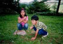 近くには自然がいっぱいの動物園もある。動物達は、鹿やウサギそれから猪とか馬など、のびのびと暮らしている。入園料は1人100円。写真右下のミルクポットでできた料金入れに入れて入る。