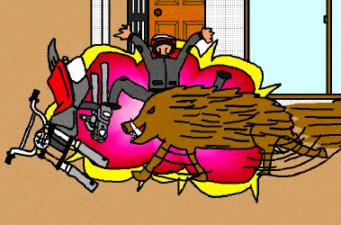 と!、そこに突然いのししが!! モンキーと共に吹っ飛ばされるS.M君!