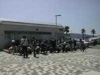 今回唯一のアクシデントが起こった。砂の浮いた路面にフロントを取られ、内田氏がスリップダウン。五メートルほどすべったのだが幸いバイクはまったくといっていい程無傷だった。本人も膝をすりむいたくらいで済んだ。もう少しスピードが出ていれば途切れた防波堤から海へダイブ!という楽しい光景も見られたかもしれないのに...