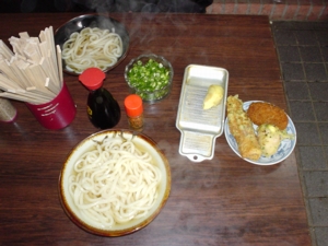 嫁さん曰く「バザーのうどんじゃん!」と言っていたが、それは素人の意見だぜ。やはりお店の雰囲気なども感じながら食べるとうまい!のだ。 得にこのちくわの揚げ物が絶品だった。普通より少し径が大きく、肉厚が薄い。 ゆで卵の揚げ物も中からとろ~っとした黄身が出てきて最高の味わいだった。