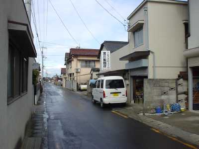住宅街の路地を「こんなところに本当に有るのかあ~」っと不安になりながらもずっと入っていくと「宮川製麺所」のかんばんを発見!(写真中央)